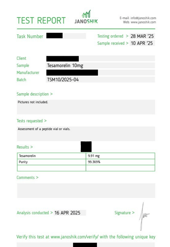Some COAs may contain redactions of confidential or proprietary information. These redactions do not impact or obscure any analytical data, including compound identity, purity, or test results.